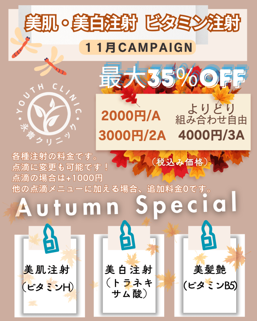 - 美容ケア:美肌や美白を目指した点滴治療で、お肌の健康をサポートします。
